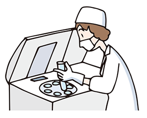 医療機器メーカーでは、検査に必要な各種医療機器の開発や安全管理、保守点検・試料の品質管理などを行っています。また、全国のどの病院、どの検査センターで検査を行っても常に同じ結果になるように、検査の標準化にも取り組んでいます。
